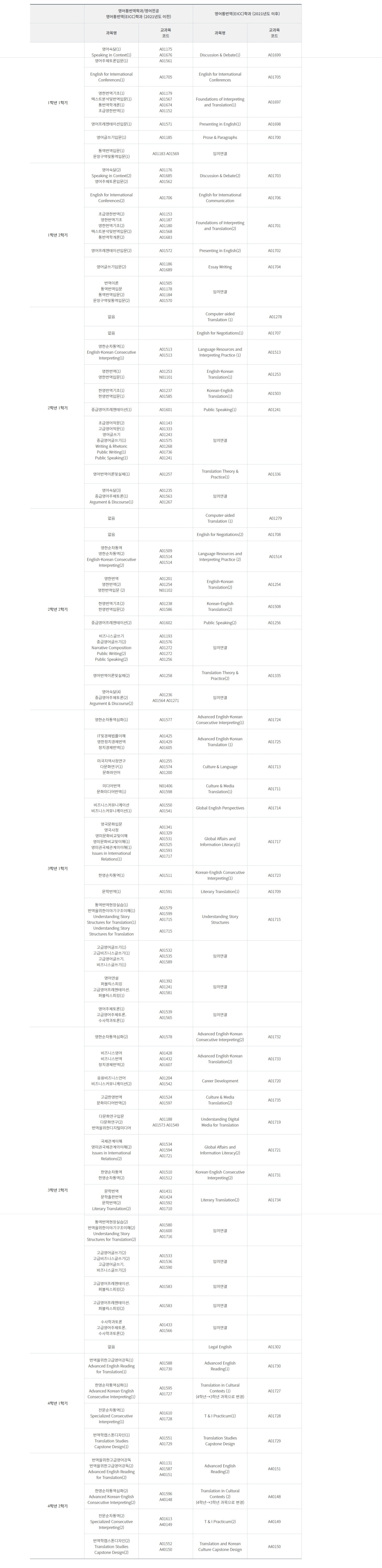 (2025학년도 교육과정 개편 이전 영어통번역학과 재수강 연결표는 이곳을 클릭하여 확인.)